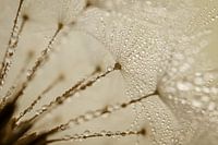 Koop dit bloemen kunstwerk Bruintinten: Doorkijkje naar pluisje met waterdruppeltjes van Marjolijn van den Berg op canvas, aluminium dibond, (ingelijste) fotoprint, behang en ArtFrame, op maat geprint in Fine-Art kwaliteit.