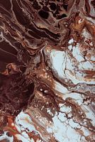 "Bruintinten stromen langs elkaar door wit en bruin (vloeibare kleuren)" is een abstract werk van verschillende vloeistoffen (waaronder verf met kleine glittertjes en "vintage" verf ) die over het canvas "stromen". (abstract) Hiervan is een foto gemaakt en bewerkt. De meest gebruikte kleuren in dit werk zijn bruin, oranje wit en zwart (aarde tinten / retro kleuren).
