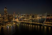 Prachtige foto van nachtelijk Rotterdam, met de verlichting in beeld, de flats de kantoren, de Erasmus burg, de straatverlichting.
