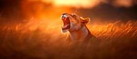 Koop dit leeuwen kunstwerk Brullende leeuwin in de zonsondergang van Poster Art Shop als print op canvas, aluminium dibond, (ingelijste) fotoprint, behang en ArtFrame. Voor jou op maat geprint in Fine-Art kwaliteit.