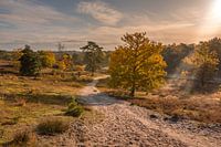 Een prachtige opname van de Brunssummerheide op een fraaie herfstdag. De fraaie zonnestralen en de mooie goudengloed van de zon maken het tot een bijzonder mooi herfstplaatje.