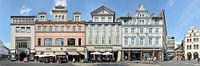 Een lineaire montage van de voorkant van het gebouw langs de noordkant van de Kornmarkt in Braunschweig, opgebouwd uit een serie multi-perspectieve foto's. Het volledige panorama in het origineel vindt u hier: https://panoramastreetline.de/kohlmarkt-nordseite-braunschweig-deutschland-P15762