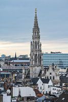 De gothische toren van het Brusselse stadhuis, genomen vanop de oude parking 58 site.