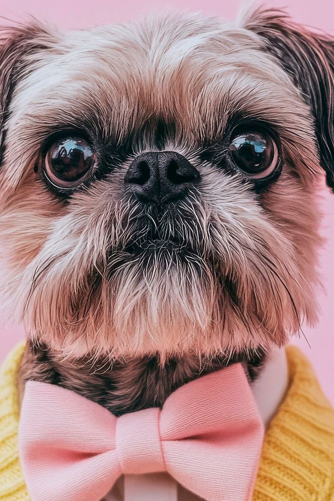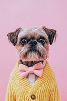 Met de charme van een kleine gentleman, verschijnt deze Brusselse Griffon in een fel gele gebreide trui en een delicaat roze strikje. Zijn grote, diepe ogen stralen intelligentie en nieuwsgierigheid uit, terwijl zijn pluizige gezicht zijn onschuld en speelsheid weerspiegelt. Een echte gentleman die een vleugje elegantie toevoegt aan elke kamer!