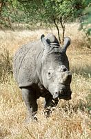Neushoorn in het Fatalah wildpark Senegal. Dit is de enige neushoorn die er nog is. Ze hebben hem eerder proberen te koppelen aan een vrouwtje maar hij wilde niet paren en heeft haar helaas gedood. De hoorn is afgesneden om de omgeving te beschermen voor zijn aanvallen. Hij staat hier op nog geen 5 meter afstand van mijn camera. Hij…