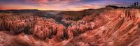 * geïnspireerd * het Bryce Canyon National Park in de USA als een panorama. Foto van de typische hoodoos en rood glimmende rotsen bij zonsopgang. Landschap Panorama 310101ays
