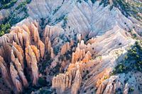 Mooi overzicht van de Bryce Canyon rotsformaties vanuit een helicopter in het ochtendglorie