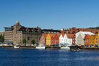 Oude houten huizen in de historische Hanzedistrict Bryggen in Bergen, Noorwegen