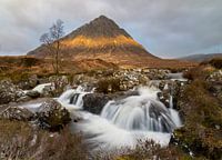 Prachtige waterval met in de achtergrond de Buachaille in Glencoe.