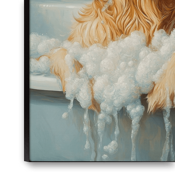Een lieve Golden Retriever die midden in het sop zit, omringd door schuim en vrolijkheid. Dit speelse schilderij laat zien hoe humor en warmte samenkomen in één beeld. Ideaal voor hondenliefhebbers en iedereen die zijn interieur een luchtige en vrolijke twist wil geven. Onderdeel van de serie Bubbels & Beesten, waarin verschillende…