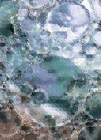 Abstracte fantasie kunst in voornamelijk groen en blauw/lila tinten, met een glas mozaiek effect