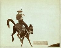 Bucking Bronco. Ned Coy, een beroemde Dakota cowboy, begint met het verzamelen van het vee met zijn huisdier Jongen Dick ., John CH Grabill, 19e eeuwse Amerikaanse fotograaf