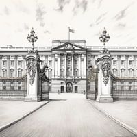 Unieke Buckingham Palace London zwart-wit schilderij met een artistieke stijl. Met prachtige kleurtinten en een uniek ontwerp maakt dit tot een stijlvolle fotoprint die prachtig staat in elke ruimte.