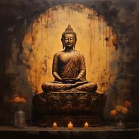 Buddha(boeddha) in bloemen donkergeel schilderij met een prachtige en unieke stijl. Met prachtige kleurtinten en een uniek ontwerp maakt dit tot een stijlvolle fotoprint die prachtig staat in elke ruimte. 100% uniek en origineel!