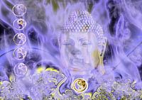 buddhakopd mit bauem nebel und yin&yang symbolen