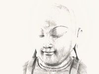Foto van houten Buddha, digitaal bewerkt en in ZW