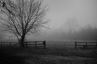 Kun je de stilte voelen? Dit zwart-wit motief uit de serie "Bünde im Nebel" neemt je mee op een wandeling door het mysterieuze landschap van een mistige ochtend in Bünde (NRW). De oude boom, die als een stille schildwacht tegen de mist staat, en het verlaten hek vertellen verhalen van rust, vergankelijkheid en de schoonheid van het moment.