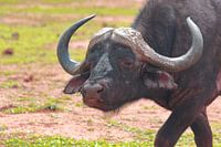 Deze nieuwsgierige oude buffel kwam ons observeren. Zo ziet hij er ongevaarlijk en speels uit. Niets is echter waar.