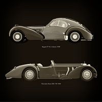 Voor de liefhebber van oude klassieke auto's is deze combinatie van een Bugatti 57-SC Atlantic 1938 en een Mercedes-Benz SSK-710 1930 werkelijk een prachtig werk om in huis te hebben.