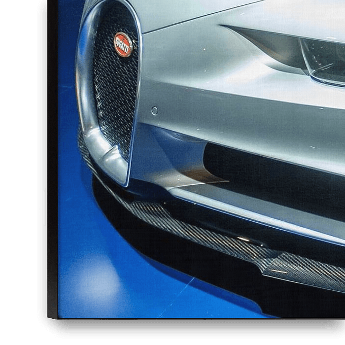 Bugatti Chiron middenmotor W16 motor exclusieve hypercar vooraanzicht. De Bugatti Chiron is uitgerust met een 8,0 L quad-turbo-opgeladen W16-motor die 1.479 pk produceert, gekoppeld aan een zeventraps transmissie met dubbele koppeling.