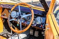 Bugatti Type 57 Berline jaren '30 Berline classic car interieur met houten stuurwielen en chromen details.