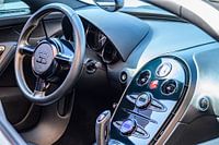 Dashboard van een Bugatti Veyron supercar. De auto staat geparkeerd voor de Bugatti dealer in Monaco.