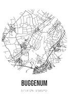Zwart-witte landkaart, stratenplan of plattegrond van Buggenum. Buggenum is gelegen in de gemeente Leudal, provincie Limburg. Op de stadskaart zijn alle openbare wegen in Buggenum opgenomen. Verder is de kaart voorzien van de coördinaten van het centrum van Buggenum.
