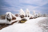 Buhne in de winter aan de kust van de Oostzee bij Kühlungsborn.