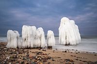 Buhne in de winter aan de kust van de Oostzee bij Kühlungsborn.