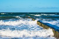 Over ‘Buhnen an der Küste der Ostsee an einem stürmischen Tag’ van Rico Ködder