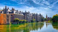 Politiek Den Haag vindt plaats aan het Binnenhof. Het bekende gebouw met de 2 torentjes. Dat staat zoals de naam al zegt in een binnen hof. De buitenkant is dan ook dit buitenhof met de bekende hofvijver. Bij lekker weer kan je daar heerlijk op de kade zitten of onder de bomen wandelen. Een prachtige plaat van een mooi en indrukkend gebouw met veel betekenis in het dagelijkse politieke leven.