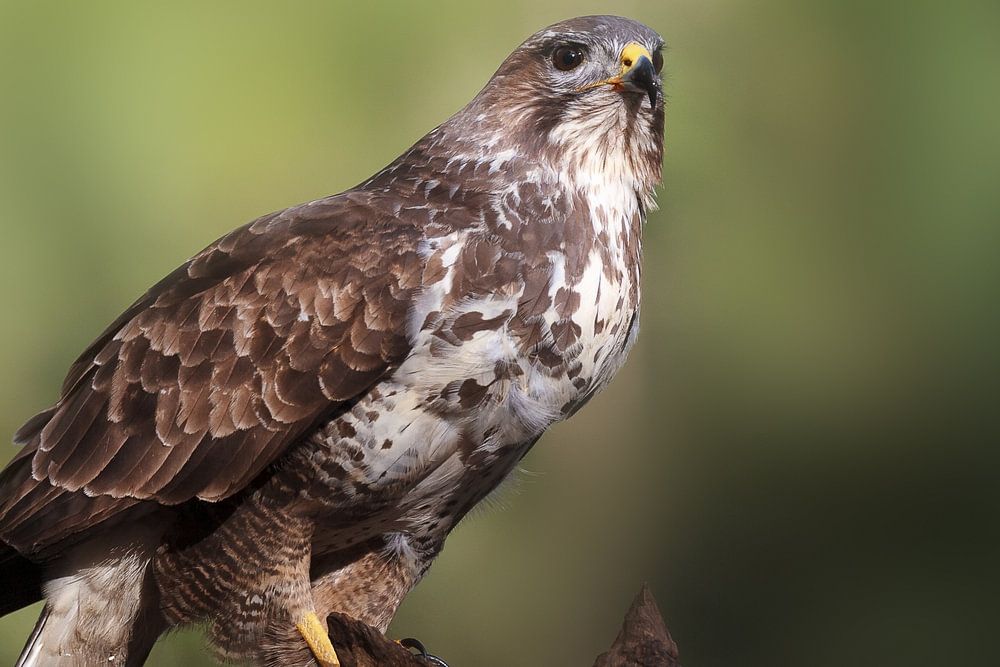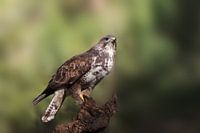 Buizerd in de ochtend zon na het eten van een prooi. In Nederland is de populatie van buizerds steeds groter aan het worden.