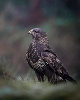 De buizerd is de meest voorkomende roofvogel van Nederland. Je ziet hem vaak langs de snelweg op lantaarnpalen zitten. Dit individu liet zich even mooi zien op de bosgrond wat voor een mooie foto zorgt.