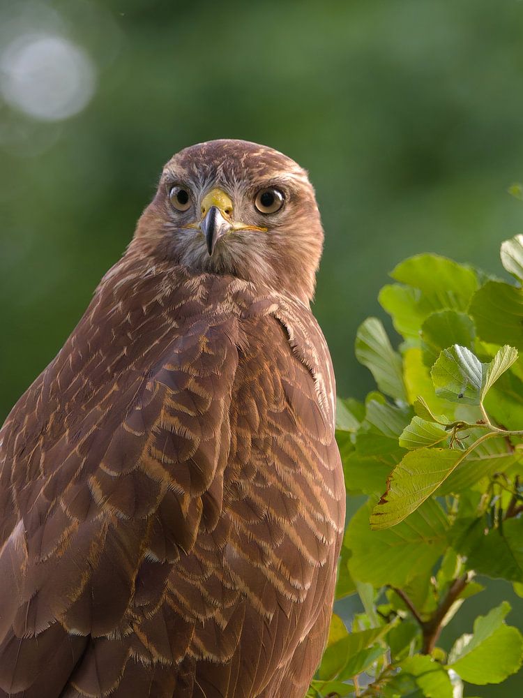 Dit vrij jonge exemplaar kwam aangevlogen en ging zelf relatief dichtbij, in een boom zitten. Dat gaf gelegenheid om close-up foto's te maken zonder het dier te verstoren.