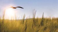 een roofvogel boven een veld
