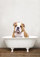 Deze grappige buldog in een badkuip wanddecoratie is een goede keuze wanneer je houdt van humor en op zoekt bent naar een vrolijke honden foto voor aan je badkamer muur. Liever een ander dier? Je vindt ze in de "dieren in badkuip" collectie.