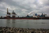 Bulkcarrier klaar om te lossen in de haven IJmuiden van scheepskijkerhavenfotografie