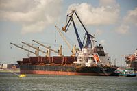 Bulkcarrier op een zonnige dag op de boeien Waalhaven.