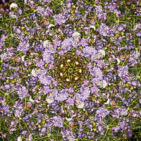 Dit vrolijke werk is gebaseerd op een zomerse foto van een veld met wilde bloemen. En dan met name een paars bloemetje genaamd duifkruid, scabiosa columbaria.