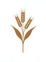 Een eenvoudige maar elegante illustratie van samengeklonterde tarwehalmen in klassieke goudbruine tinten. Het strakke ontwerp toont meerdere graankoppen met karakteristieke borstelharen (awns) en overlappende pitten, tegen een neutrale achtergrond. Ideaal voor bakkerij-logo's, meelverpakkingen, materialen voor de graanindustrie,…