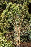 Gedroogde bundel van het kruid: wilde Marjolein oftewel oregano, op een voedselmarkt in Italië. Een mooie foto voor in de keuken.