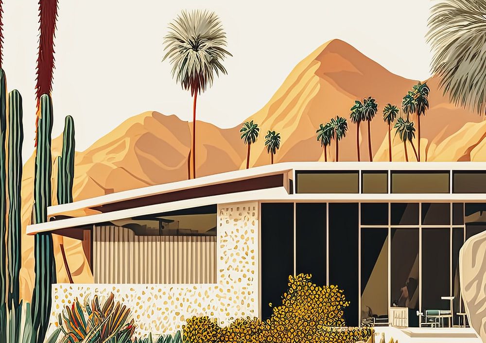 Stap binnen in de betoverende wereld van een jaren 50 bungalow gelegen in de adembenemende woestijn van Arizona. Omgeven door majestueuze palmbomen en indrukwekkende agave planten, is deze bungalow een ode aan de retro-stijl en de vintage geometrische architectuur die zo kenmerkend is voor die tijd. De naadloze overgang van de prachtige tuin naar de betoverende omgeving zorgt ervoor dat u zich volledig ondergedompeld voelt in de magie van de jaren 50. De bungalow straalt een unieke charme uit met zijn strakke lijnen en hoekige vormen die kenmerkend zijn voor de geometrische architectuur uit die tijd. Geniet van een heerlijke cocktail op het zonovergoten terras terwijl u uitkijkt over de prachtige woestijnlandschappen. Deze unieke ervaring neemt u mee op een reis door de tijd naar een tijdperk van ongeëvenaarde stijl en klasse.