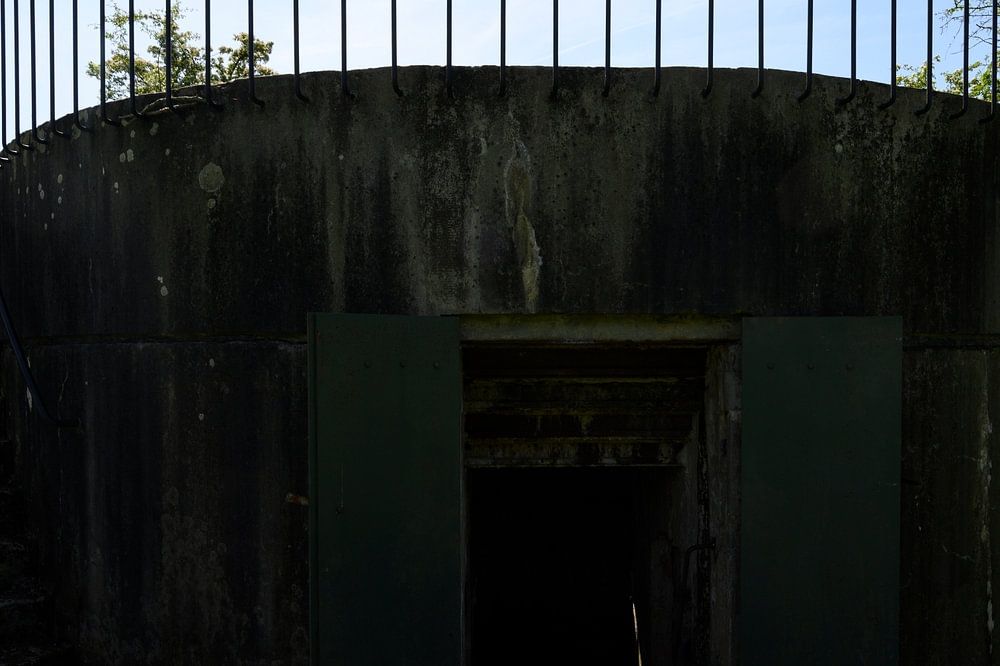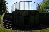 Fort Nigtevecht dat onderdeel uitmaakt van de stelling van Amsterdam, is een 19e -eeuws verdedigingswerk. dit werk toont één van de buiten bunker dat via een stenen trap naar beneden te betreden is. Boven op de bunker is een in boogvorm getralied hek gemaakt. Het felle licht op de achtergrond contrasteert fraai met de in de schaduw liggende bunker.