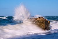 Bunker blijft op een stormachtige dag aan de kust van de Oostzee.