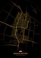 Stadsplattegrond Bunschoten Nederland, ontworpen door Maruyama. Een perfecte decoratie voor aan de muur om authenticiteit toe te voegen aan je huis.