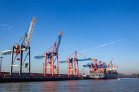 Container portaalkranen bij Burchardkai in de haven van Hamburg.