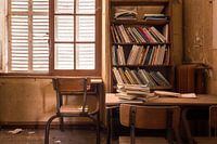 Dit is een foto van een kleine kamer in een verlaten universiteit die halverwege de 19e eeuw is gebouwd. Het doel van het college was om priesters op te leiden. Het vinden van goedgekeurde leraren was de uitdaging en rond de jaren 70 in de 20e eeuw werd het college verlaten.
