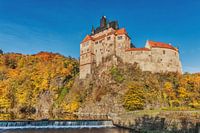 Die Burg Kriebstein, eine Bergspornburg erhebt sich auf einem steilem Felsen über dem Fluss Zschopau. Die Höhenburg wurde vor 1384 errichtet und gilt als schönste Ritterburg Sachsens. Kriebethal, Mittelsachsen, Sachsen, Deutschland, Europa