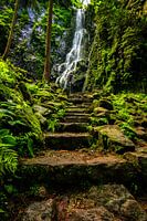 In de zomer kwamen we tijdens een korte fototocht door het Zwarte Woud langs de Burgbach-waterval. Midden in het bos ligt deze mystieke plek. Een oude, rottende stenen trap leidt naar de waterval. Overal ligt puin en er groeien planten die veel vocht nodig hebben. Voor deze foto wilde ik de stenen trap met groene begroeiing naar de waterval laten leiden en het geheel lang belichten om de waterval perfect in beeld te brengen.