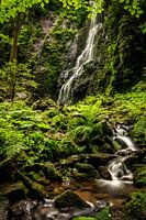 In de zomer kwamen we tijdens een korte fototocht door het Zwarte Woud langs de Burgbach-waterval. Midden in het bos ligt deze mystieke plek. Een oude, rottende stenen trap leidt naar de waterval. Overal ligt puin en er groeien planten die veel vocht nodig hebben. Voor deze foto wilde ik dat het beekje met de groene vegetatie naar de waterval zou leiden en dat het geheel lang zou worden belicht om de waterval perfect uit te laten komen.